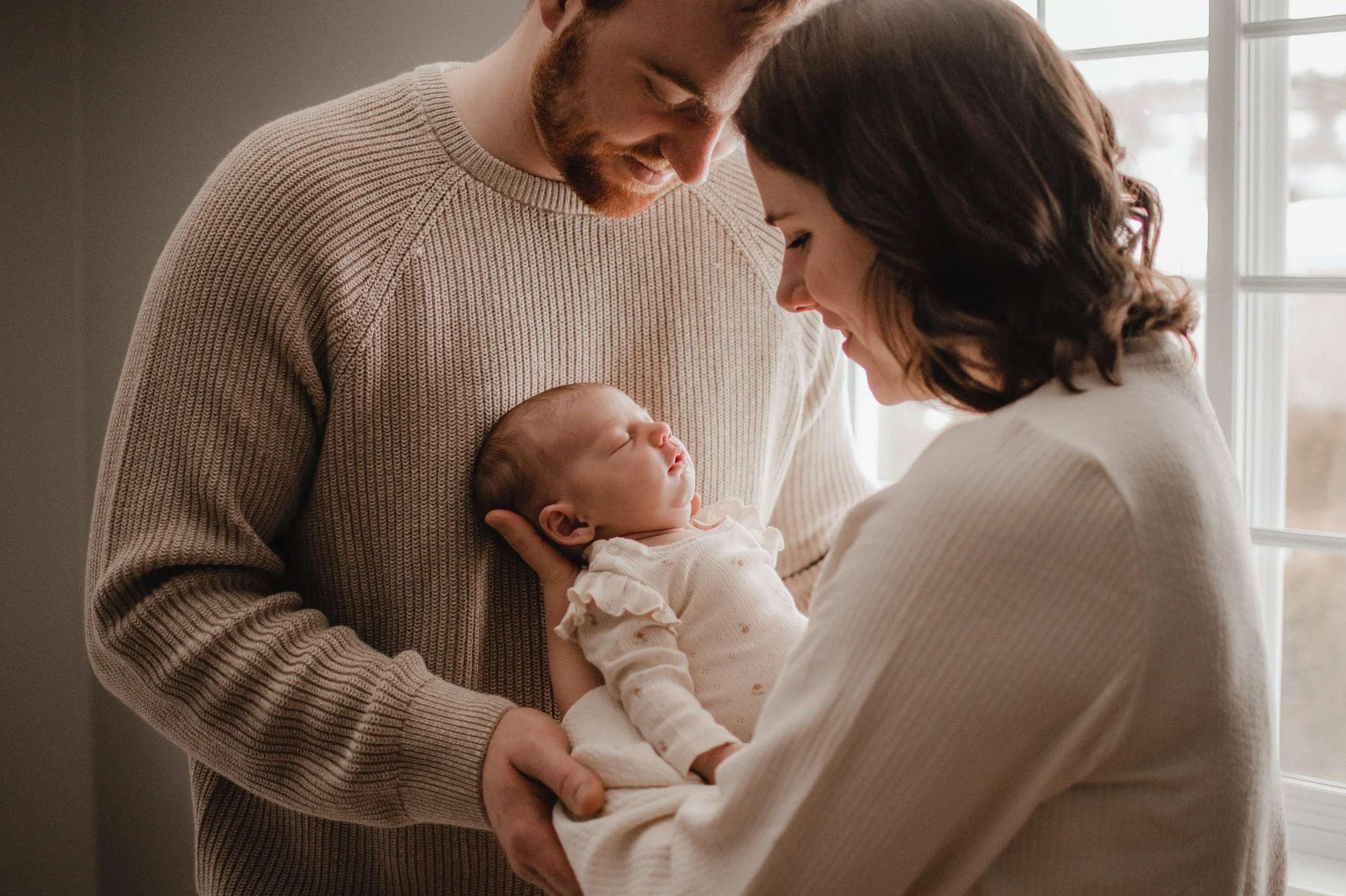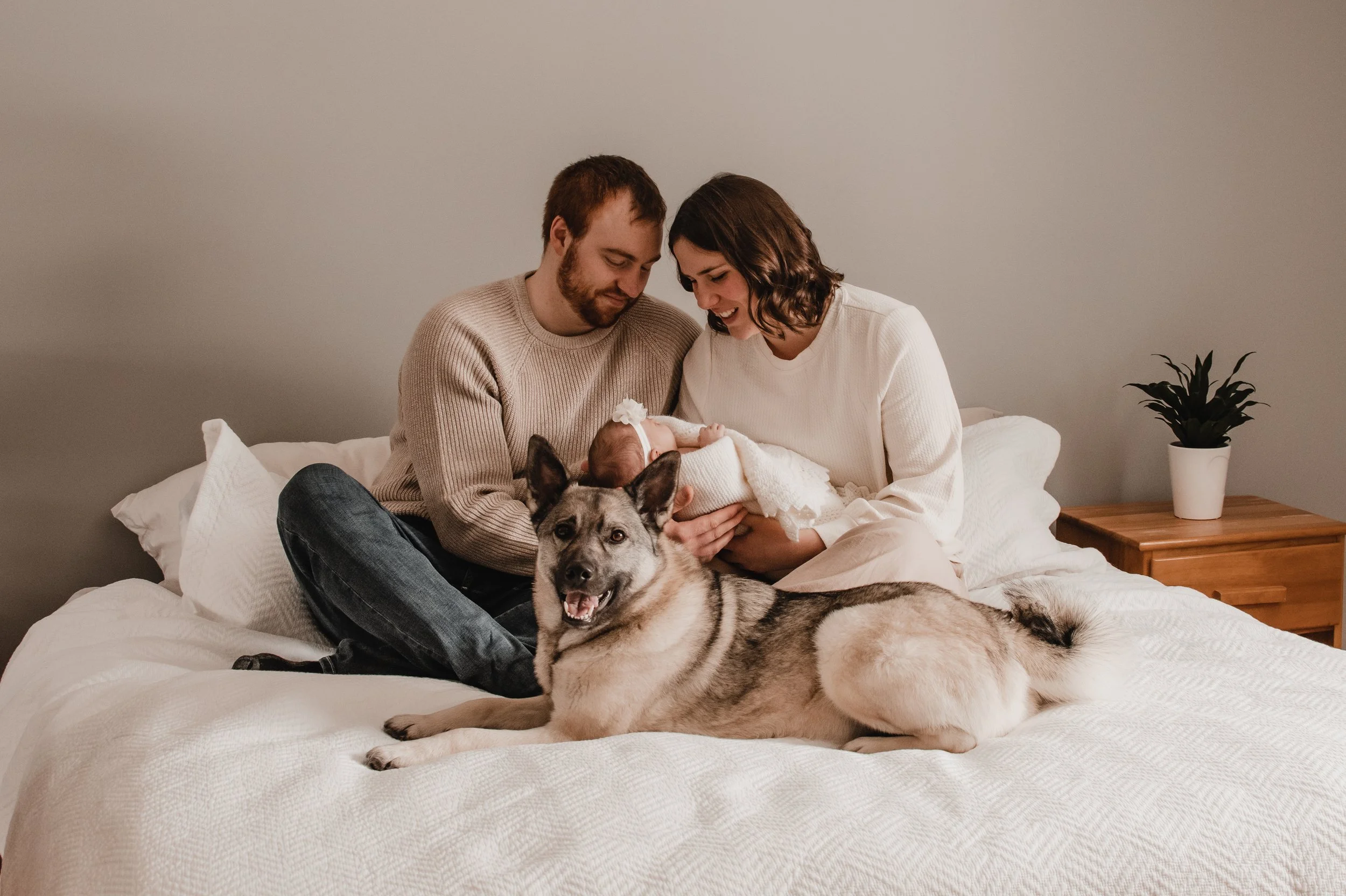 It is exactly what it sounds like, personal and representative of your lifestyle! While many studio newborn sessions focus on your baby, perhaps swaddled + laying in a basket with various different backdrops, a lifestyle newborn session focuses on what candid life looks like with a newborn. While I definitely include photos of your little one alone, there is so much more to this session! This type of session involves natural poses in the comfortable setting of your home. Everyone in the family is included (at no extra cost), even your fur babies. Coming to my client’s home lets me tell their story in a way that I can’t in a traditional studio. My aim is to give you an experience that is relaxed and natural while documenting this huge milestone.